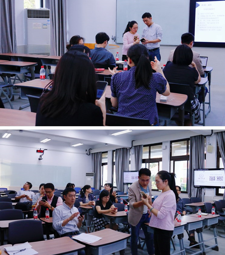 为了确保比赛顺利进行,本次工作坊特邀现代教育技术中心朱碧月老师培训南强智慧教室的使用技术,包括显示屏的手动操作、课件处理、学生表决、雨课堂等实操技巧。本届比赛11位参赛教师全员参加了本次工作坊,现场气氛热烈。