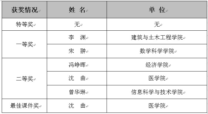 根据教学比赛评审规则,经比赛评委会专家评审,组委会审议,现将比赛获奖名单予以公示,公示日期为2018年11月13日—11月19日,如有异议,请在公示期内向组委会反映。