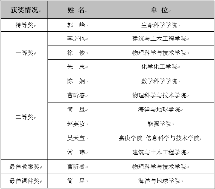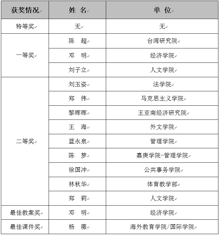 厦门大学第十三届青年教师教学技能比赛获奖公示