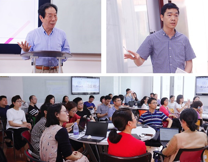 本期沙龙由我校教育研究院郭建鹏教授主持。郭教授幽默风趣地分享了自己把大数据、信息技术与慕课、翻转课堂教学、混合式教学结合起来,实现教学创新,提高教学效果等方面的探索经验。随后,雨课堂资深培训师梁逸明与在场教师探讨了雨课堂在实现教学创新中起到的作用。我校黄正接、洪镔两位老师分享了其在日常教学过程中,将前沿信息技术融入教学场景中,大大提升了学生自主学习能力,教学效果显著的成功经验。洪老师特别强调混合式教学中取得成功的关键首先在于任课教师对现代信息技术有一定的掌握,才能在课堂上信手拈来。