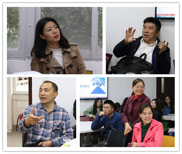 杨老师首先从视频拍摄的基本流程、视频制作标准、技巧、拍摄常见问题及常用软件几部分进行详细讲解,之后与多位参与教师就自己在视频制作方面遇到的问题展开讨论。热烈的讨论、对话与交流令现场气氛格外活跃。杨老师表示,会后将利用网盘将常用软件分享给大家,并加入中心建立的翻转课堂微信群与大家保持联系,以便及时回答教师们在实践操作中遇到的问题。