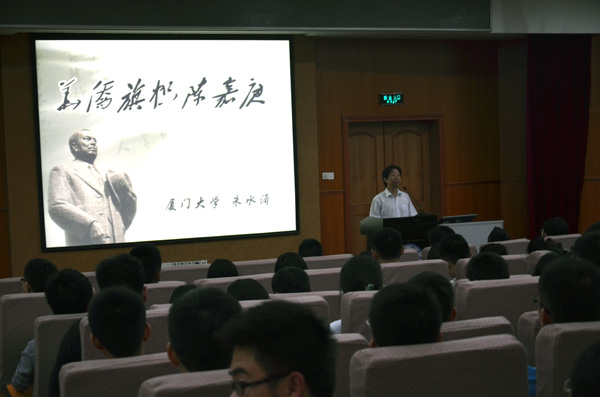 朱水涌还向同学们介绍了厦门大学经历的改名风波,讲到陈嘉庚和厦大校友为保留“厦门大学”校名所作出的努力,令同学们深深感受到校主嘉庚先生的远见卓识和厦大人对母校的真挚情感。