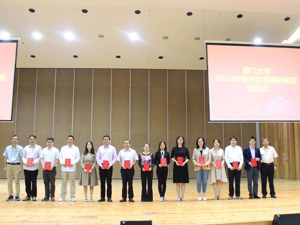 在11月7日上午的分学科研讨环节,人文学院王日根、管理学院徐迪、林伯强、知识产权研究院龙小宁、社会与人类学院胡荣、数学科学学院谭忠、化学化工学院谢素原、信息学院石江宏、航空航天学院侯亮、电子科学与技术学院陈忠、生命科学学院李勤喜、公共卫生学院张军等资深教授分享了他们在研究生培养过程中的经验体会。研究生院相关负责人围绕研究生培养方式、培养质量监控、导师招生资格确认、师生导学关系、因材施教、学术引领以及学科建设等问题与大家近距离、面对面交流,听取了来自一线导师的心声与感受。为进一步提高研讨的针对性,研究生院会前向各位新导师问卷征集对研究生指导感兴趣的问题及关心的培养政策。研修班结业典礼上,研究生院为参加培训的新任研究生导师代表颁发了研修结业证书和导师徽章。希望通过研修学习,新任导师尽快熟悉研究生教育的政策法规,了解研究生培养过程的各个环节,明确岗位职责,创新培养理念,提升指导能力,更好地承担起研究生培养引路人的责任,不断增强导师的使命感、责任感和荣誉感。