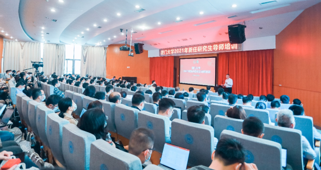 为贯彻落实习近平总书记对研究生教育工作的重要指示精神和全国研究生教育会议精神,创新人才培养理念,提升导师教书育人能力,提高研究生培养质量,11月6日,学校举行2021年新任研究生导师培训活动。此次培训由研究生院和教师发展中心联合举办,来自全校31个学院(研究院)和附属单位的210余位新任研究生导师参加培训。校长助理、研究生院常务副院长方颖教授出席并做了讲话,会议由研究生院副院长欧阳高亮教授主持。本次培训邀请多位专家为新任研究生导师做立德树人、师德师风、导学关系等专题报告,同时还通过分组研讨的形式开展研究生指导经验交流分享及研究生教育政策答疑,助力新任研究生导师当好研究生成长成才的指导者和引路人。