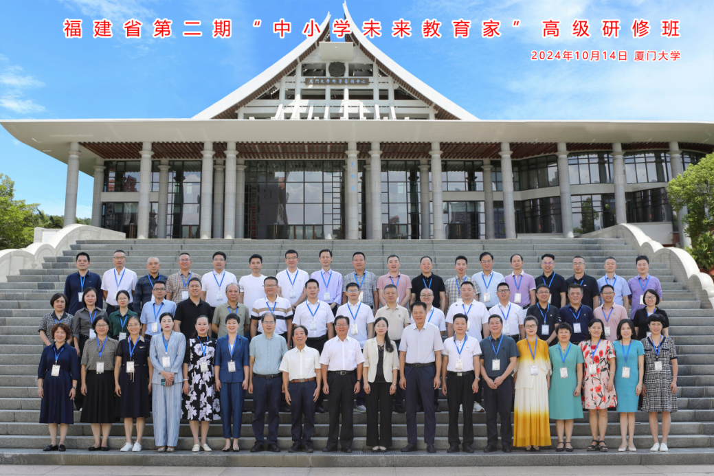 为深入贯彻全国教育大会精神和践行教育家精神,推动基础教育高质量发展,筑牢教育强国基石,10月14日-24日,由福建省教育厅主办、厦门大学教师发展中心承办的“福建省第二期‘中小学未来教育家’高级研修班”举办,来自全省51名中(小)学校长参加本次高级研修活动。