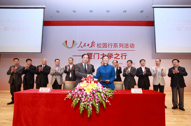 4月9日下午,“人民日报校园行——厦门大学之行”在厦大科学艺术中心音乐厅隆重举行,我校与人民日报社签署合作协议。根据协议,双方在新闻传播、人才培养、教育培训、学术研究、品牌推广等方面开展深入合作。