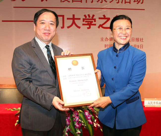 校党委书记杨振斌致辞,并向马利颁发厦门大学兼职教授聘书,为其佩戴校徽。