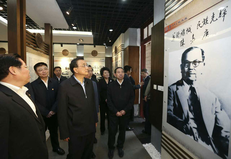 下午5时许,总理一行乘车抵达由校主陈嘉庚亲自奠基的群贤楼前。总理步入校史馆,听取朱崇实校长关于我校办学历史的介绍,仔细了解我校建设发展情况。在展示有毛泽东同志题赠、邓小平同志手书的“华侨旗帜、民族光辉”题词的展板前,总理驻足倾听,对陈嘉庚爱国爱校、倾资办学的壮举深表崇敬,对厦大在长期办学历程中形成的优良办学传统和深厚文化底蕴表现出了浓厚的兴趣。总理充分肯定了我校辉煌的办学历史和优良的办学传统,高度评价我校建校90多年来,始终与国家和民族同呼吸、共命运,在人才培养、科学研究等方面取得了突出成就,为国家富强、民族进步作出了重要贡献。他表示,厦大作为“南方之强”,在各方面都有很大的发展空间,可以展现更大的作为、取得更好的业绩。