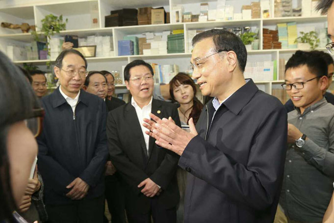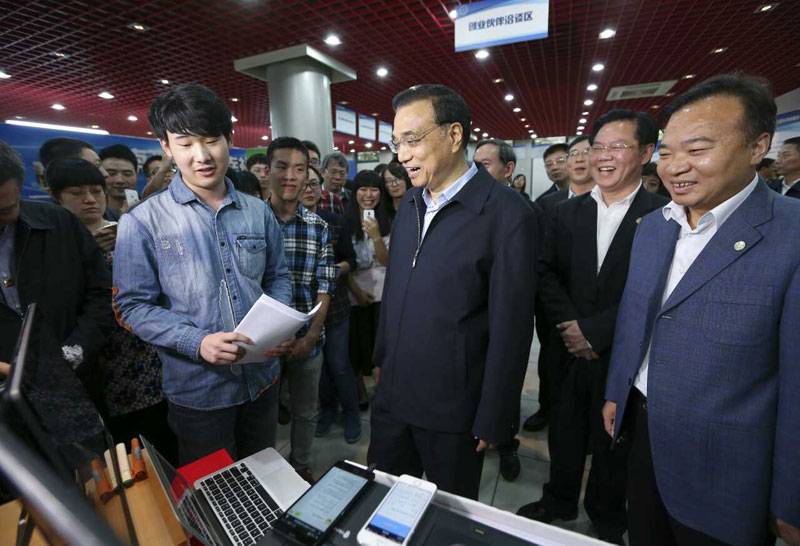 总理饶有兴致地参观了现场的咨询区、招聘区和寻找创业伙伴洽谈区。在洽谈区中部,“重新定义高校数据 开启大学生信用时代”的标语吸引了总理的注意。打出这个标语的是我校软件学院2011级本科生李正强,由他牵头注册的“北京某个网络科技有限公司”开发的“萌小助”高校微信服务平台,能与全国近1000所高校的教务系统对接,为在校同学提供在线查询学习、生活信息等便捷服务。李正强向总理解释自己公司名字的缘由,“创业是每个人都可以做的事情,我们想把创业的理念带给大家,故而取名‘某个’”。总理听后赞许道:“你们公司的名字很有时代性,很有创意!”得知李正强是大四学生时,总理关切地询问:“厦大的创业环境如何?创业过程中有什么困难吗?”李正强说:“学校对于我们的创业十分开放包容,给予了许多支持。现在,我们这个平台已经覆盖了全国1000多所高校,积累了600多万大学生的信用数据,获得500万元的天使投资。”总理点头笑着说:“不错,已经百万计了。但还要继续发展,希望你们的用户再上几个数量级,将来数以亿计。祝你们的公司成长壮大,为大众创业提供支撑。” 当了解到一位从国外辞职回国创业的厦大校友正在从事模拟电路设计和芯片集成研发时,总理鼓励他能够加强与企业的合作,争取早日申请技术专利并实现发明价值。在听说我校曾获“全国毕业生就业典型经验高校”称号,学生满意度曾经在“985”高校排名第一、用人单位满意度第二,今年迄今签约率高于去年同期时,总理对我校就业工作所取得的成绩也表示了满意,希望我校继续面向社会需求,加强创新创业教育,引导大学生在创业实践中让知识得到运用。
