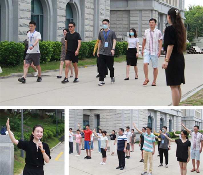 为让参营教师们增加参与度,本次活动继续传统保留节目“名师设坛”环节。在该环节,青年教师们根据自身学科特点选择指导教师,并在指导教师的安排下进行课程教学设计和试讲。之后教师们参与热情高昂,课后主动寻求相关专家的指导与交流,并组成小组进行备课和磨课,深夜依然持续头脑风暴,互相分享经验,切磋教学心得。此外,夏令营活动还安排艺术学院杨帆老师带领大家开展形体训练,既让参营老师们在紧张之余获得了放松,也训练了课堂站姿与教态、语态。