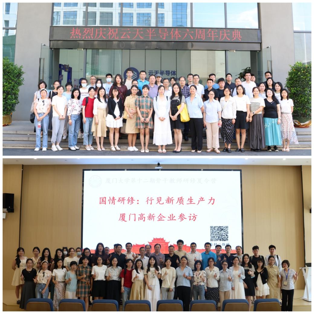为深入把握新质生产力的科学内涵,推动科教融合、产教融汇,促进学校教育科技和人才一体化建设,7月21日下午,厦门大学第十二期骨干教师研修夏令营以开展“行见新质生产力:厦门高新企业参访活动”拉开了本次夏令营序幕。来自全校50余名骨干教师前往厦门云天半导体科技有限公司、厦门安捷利美维科技有限公司开展参访交流活动。
