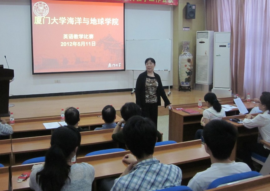 为了进一步推动我院人才培养国际化,推进教师双语教学改革进程,海洋与地球学院积极响应学校开展首届英语教学比赛的号召,于5月11日上午9:00在海洋楼A116举行青年教师英语教学技能大赛。院党委书记吴立武、副书记廖志丹、副院长曹文清、党务秘书张红疆、辅导员胡长占、教学秘书陈催娟等出席了比赛现场。参加此次比赛的青年教师有柯宏伟、刘敏、王桂芝三位老师。洪万树教授、林元烧教授、许肖梅教授、雷佳老师等五位老师作为比赛评委并对参赛选手的表现进行现场点评。部分学生代表的到场更增添了模拟课堂的现场感。