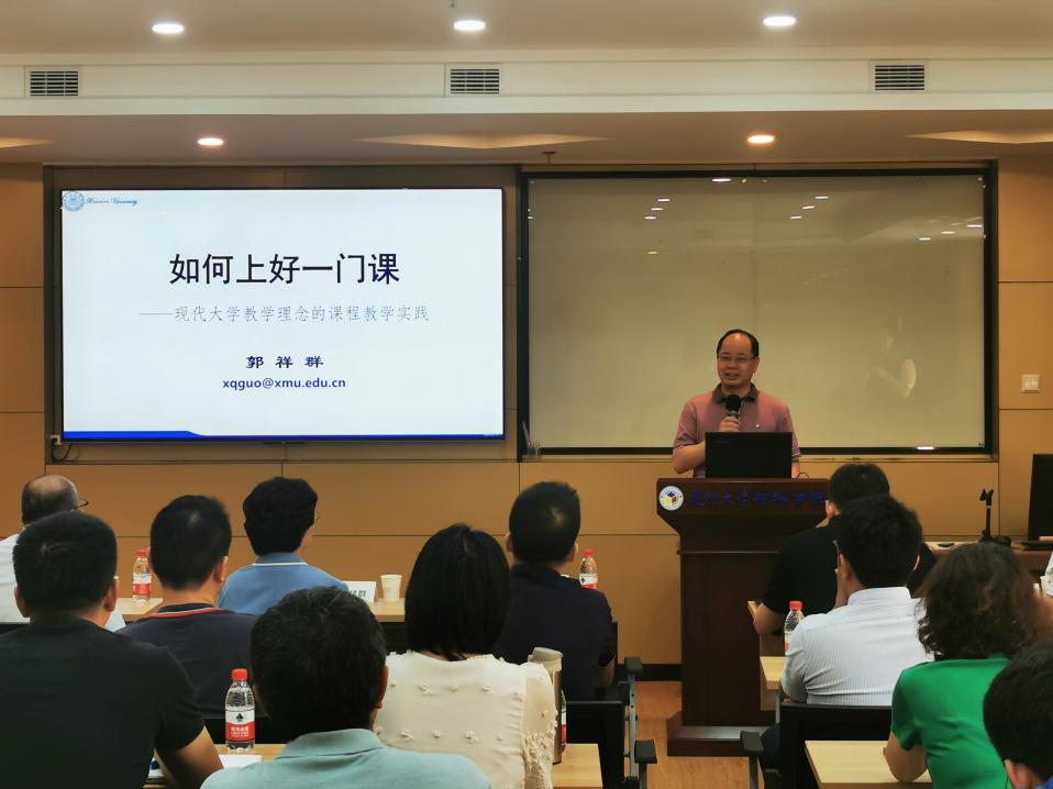 20日上午,青年教师教学技能提升沙龙在学院多媒体教室开展, 学院党委书记刘立荣,党委副书记马兆海,生物材料系副系主任孙亚楠(主持工作),材料科学与工程系副主任张志昊,生物材料系副主任林乃波以及相关教师、工程师参加。沙龙由白华副院长主持,学院特别邀请了首届国家级教学名师郭祥群教授与教师们分享《如何上好一门课——现代教育理念的课堂教学实践》。