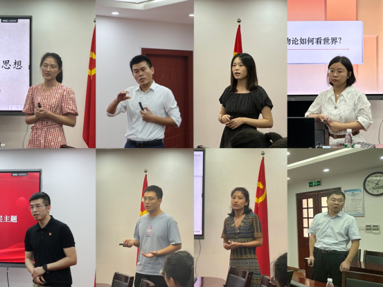 在教学比赛环节,青年教师朱东波、杨旭、黄美笛、陈铮、刘也、洪玲艳、陈洪运、刘玲分别以“加快推动经济高质量发展”“马克思主义中国化时代化的深层主题”“马克思主义唯物论如何看世界”“从资本原始积累看劳资关系”“社会历史发展的动力系统”“积极防御战略思想”“洋务运动与中国教育的近代化”“什么是全过程人民民主”为主题依次上台进行教学展示。参赛教师声情并茂,将理论知识与现实案例结合,呈现了有创意、有思考、有深度的课堂。