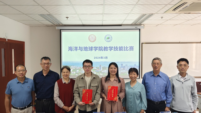 本次比赛邀请了厦门大学教师发展中心专家吴正云(厦门大学本科教学督导组组长)、袁东星,海洋与地球学院退休教师郑爱榕,物理海洋学系教师胡建宇、庄伟担任评委。副院长罗亚威及教师代表现场观摩了比赛。