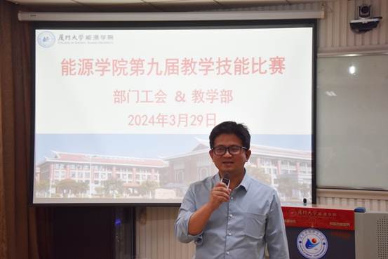 为全面贯彻党的二十大精神,提升教育质量,培养创新拔尖人才,加强新时代高质量教师队伍建设,全面推进“双一流”建设,3月29日能源学院部门工会和教学部共同举办了第九届教学技能比赛。学校本科教学督导组组长、教师发展中心指导专家吴正云老师、能源学院张尧立老师、黄子敬老师和林志彬老师担任本次比赛专业评委,能源学院党委书记王洁松、党委副书记罗俊峰、副院长赵英汝,以及新能源学系和储能学系共二十余位教师共同出席了本次比赛。比赛由党委副书记罗俊峰主持。