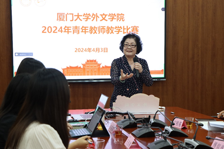 本科教学是大学发展的重要推力,为夯实本科教学基础,提高教学质量,外文学院于4月3日在德贞楼515会议室举办2024年青年教师教学比赛,教师发展中心教学指导专家、外文学院原副院长傅似逸教授,外文学院党委书记徐琪教授、副院长江桂英教授以及各系部主任莅临比赛现场。
