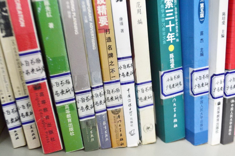 不大的办公桌上堆满了各类专业书籍和学生的作业,细心的小白老师给每本书都分门别类地贴上了标签“小白书柜-广告类研究”、“小白书柜-传媒类”等等。右手边有一堵照片墙,是学生们洋溢着青春的笑脸,他们组成了“小白动物园”,也是小白老师带领的专业团队,一起为业界做专刊,一起为广告主做策划做调研,很萌的名字却很踏实的小团队。