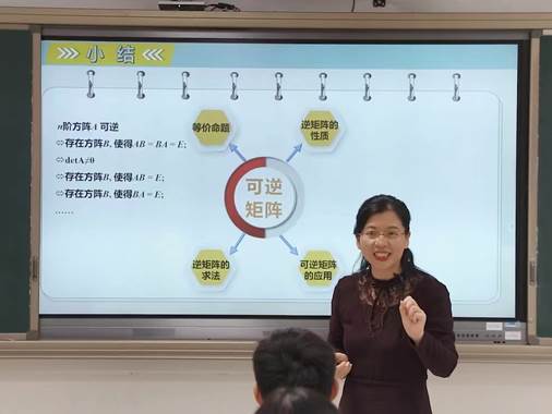 在讲授高等代数这门重要的专业核心基础课时,她一方面注重消除同学的“畏难情绪”,帮助学生更好地实现从中学到大学的学习方法的转变;另一方面注重学生自主思考与学习能力的培养。她在教学中注重过程性考核,增设小组讨论和挑战题,引导同学们合作探究,体会“跳一跳才能够得着”的乐趣。