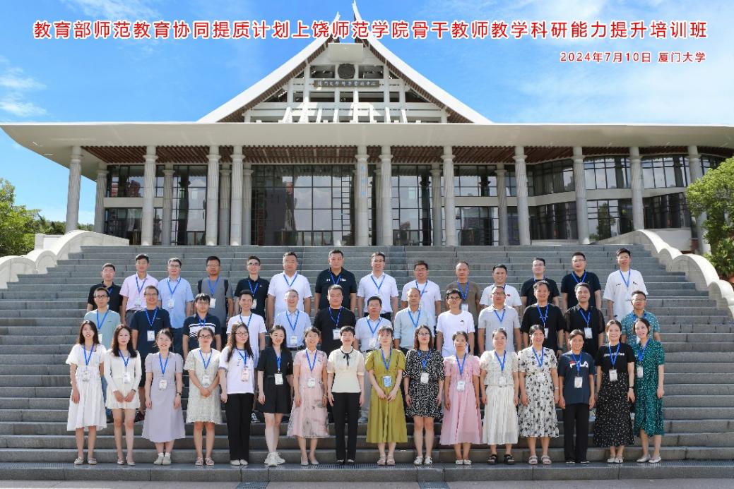为推动师范教育协同提质创新,实现教师教育高质量发展,7月9日上午,由上饶师范学院主办,厦门大学教师发展中心(以下简称“中心”)承办的“上饶师范学院骨干教师教学科研能力培训班”在厦门大学举行,来自上饶师范学院的40余名骨干教师参与本次培训活动。厦门大学校务委员会副主任、原副校长邬大光教授和上饶师范学院副校长饶爱京教授等有关领导出席开班仪式。