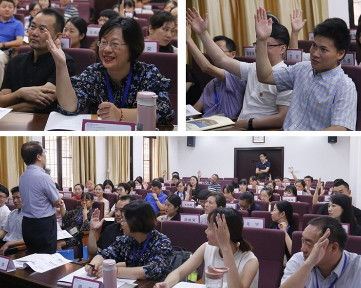 参训学员普遍反映收获满满,并在该校2018年度暑期教职工培训班上向全校教职工汇报、分享学习成果。研修班班长、该校教务处处长曾亚代表学员作了题为《不忘初心 不辱使命》的总结汇报。研修班学员、艺术学院教师杨清结合学习感受以及他近三十年的从教经历,分享了他在“教师的成长与教学”中的体会。研修班学员、电子信息学院教师肖雄亮也以“如何上好一门课”向大家分享进修学习的收获和感悟。