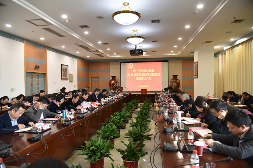 会上,学生处第二党支部书记王洁松、发展规划办党支部书记黎永强、教务处党支部书记计国君、科技处党支部书记谭忠、社科处党支部书记林木顺、招生办党支部书记余自中、财务处党支部书记曾瑞兰、实验办党支部书记贲毅、基建处党支部书记张晓云、医管办党支部书记申东杰、漳州校区办党支部书记邱媛、翔安校区保卫办党支部书记涂建芳、教师发展中心党支部书记艾浩、校工会党支部书记叶鹏飞、教育发展基金会办党支部书记曾云声和幼儿园党支部书记郑诚燕等16位同志依次进行了现场述职。述职内容围绕党支部书记抓党建工作主责主业情况、贯彻落实中央和上级党组织决策部署情况、推进机关党支部“五个基本”标准化建设情况、以党建引领和保障中心工作及业务工作开展情况、党员教育管理服务等情况,以及抓支部建设工作存在的突出问题及原因,针对问题的整改措施和下一步工作思路等展开。述职完毕后,全体与会人员对现场述职的支部书记进行了评议打分。