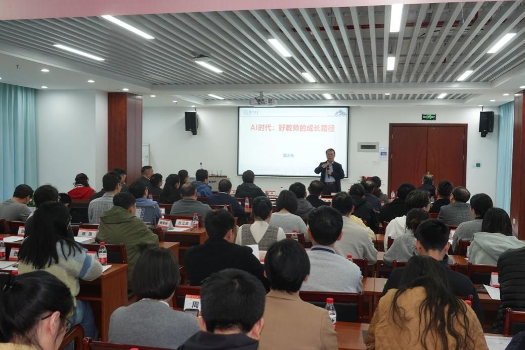 启动仪式结束后,邬大光作“AI时代:一个好教师的成长路径”专题辅导报告,从AI引发的教与学的主要变革谈起,结合自身开展教学活动的实践与思考,阐述了对好老师成长路径的理解。他认为,AI时代虽然带来了教育教学形态的变革,但“好老师”的精神内核不会变。好老师,要具备大爱、无私奉献,要懂得自律、身正为范,不仅要读懂上一代学人留下的宝贵精神财富,更要有意识地为后来人留下经典、精品,不仅要看到学生的进步,更重要的是要让学生看到自己的进步。